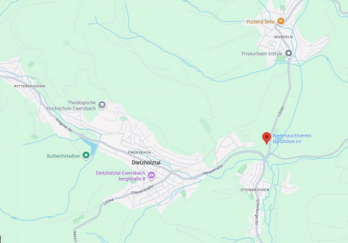 Der Lehrbienenstand des Bienenzuchtvereins befindet sich zwischen Steinbrücken und Mandeln an der L3043 gegenüber dem Parkplatz des Hammerweihers.
